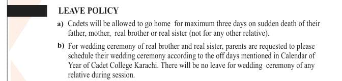 As per leave policy (Ref: Page #25 of Prospectus) as mentioned in the below, it is requested to plan all events like Umrah, Wedding, Engagement etc in summer/winter vacations.